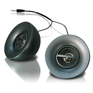Delight your friends by sharing your music with these handy, powerful and compact Philips SBP1100/37 speakers. Take them anywhere to plug and play with your MP3, your CD player or your laptop. Small and lightweight for carrying in your pocket or bag. No batteries required for extra convenience.