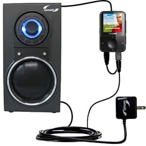 Need a way to enjoy music from your Philips Gogear Vibe without being limited to a pair of headphones? With Gomadics new High Output Powered Portable Amplified Audio Speaker; you (and all your friends) can enjoy music from your Gogear Vibe anywhere! Whether you are cooking in the kitchen; sitting around the patio table with friends or dancing in the basement; Gomadics amplified speaker will keep the tunes flowing. Equipped to play equally well using its internal high capacity rechargeable batteries (2 x 1000mAh) or with the included AC wall power supply; our portable speaker is ready to go. Optionally; two memory card slots are integrated into the back of the speaker which can be loaded with MP3 files for direct play without using your Gogear Vibe at all. Customers are amazed at the amazing sound quality (which can go surprisingly loud) that comes out of such our stylish and compact speaker (only a little over 8" in height). An absolute must have accessory for anyone that wants to listen to enjoy music from their Philips Gogear Vibe without being tethered to a pair of headphones. Like all Gomadic products; our Amplified Audio Speaker is also backed by our lifetime warranty.