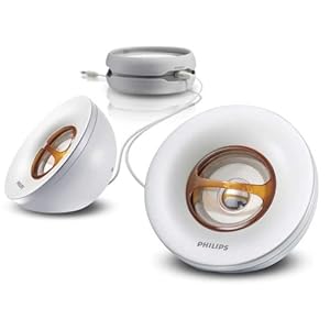 The Philips SBA1500/37 is both a portable and powerful speaker system to boost your music. Play extra powerful, rich sound to thrill your friends. These speakers come with their own power pack to amplify the music, which also neatly clips together with the speakers for true compact portability . Take them anywhere.